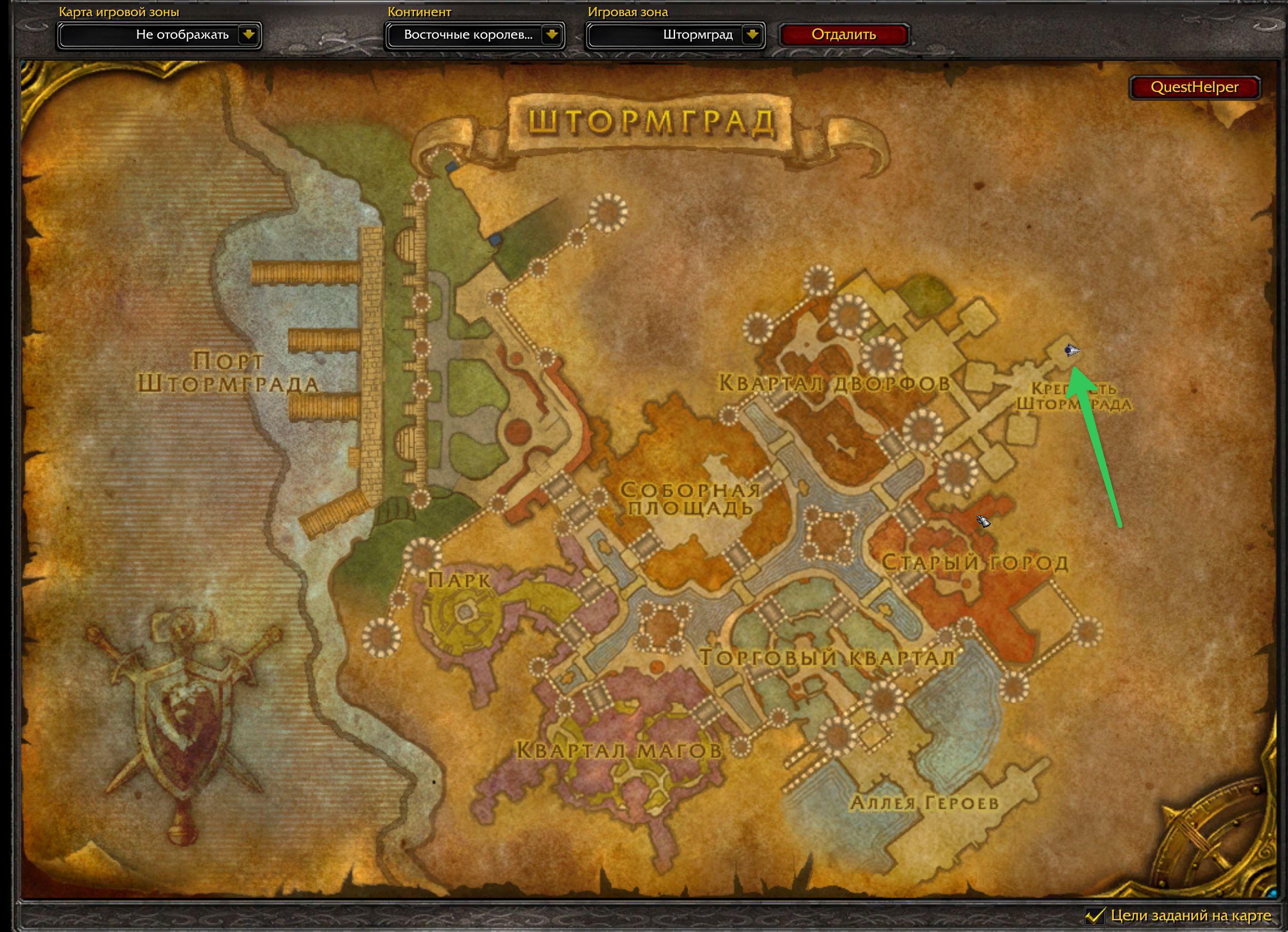 - Штормград — у зоны арены рядом с крепостью