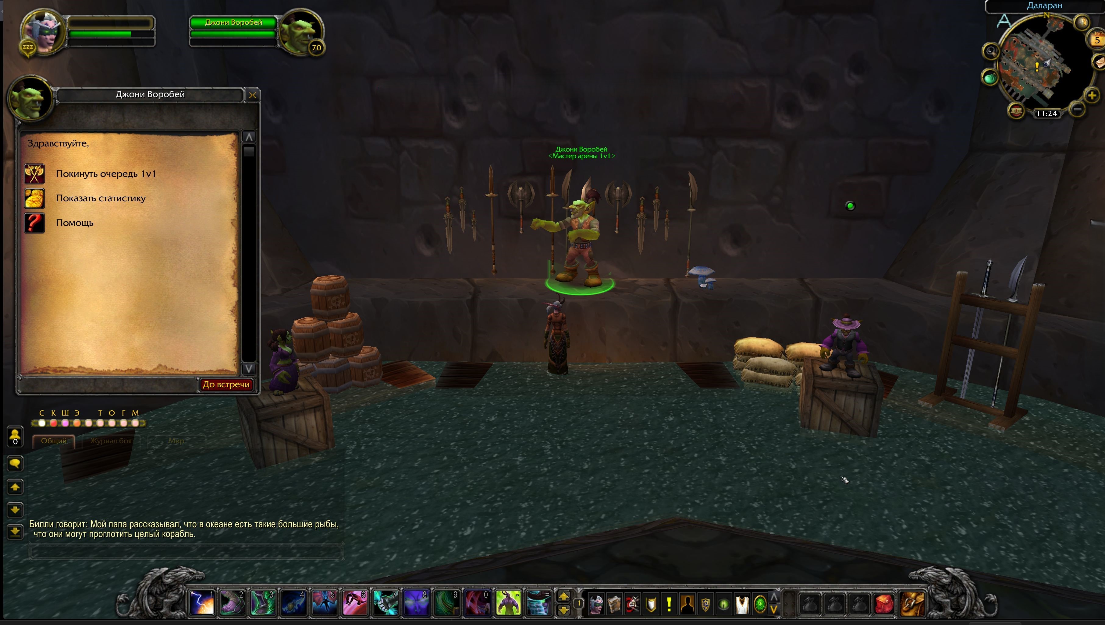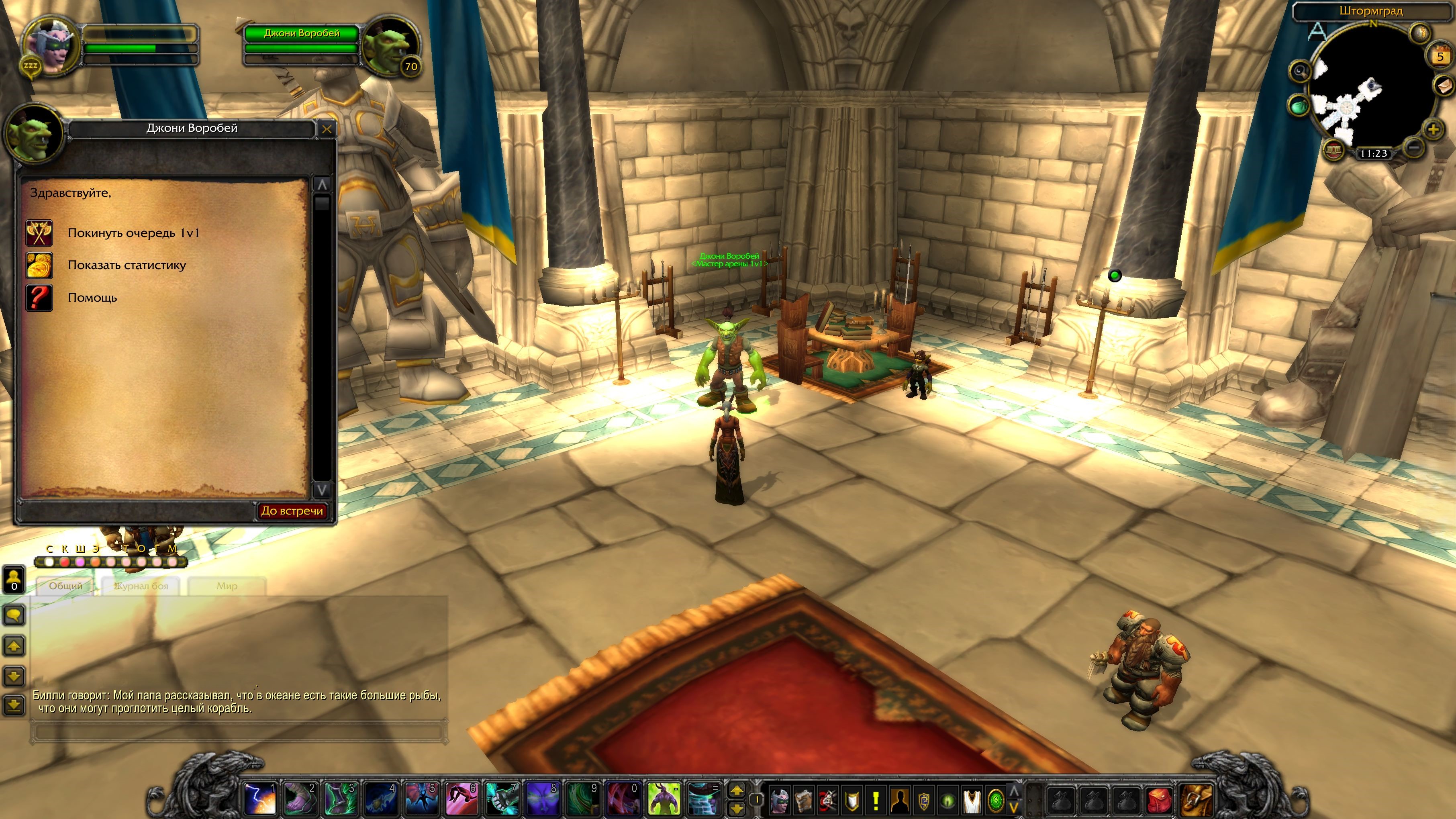 В столицах добавлен новый НПС — мастер арены 1v1 - Джони Воробей, у которого можно зарегистрироваться и встать в очередь на поединок 1 на 1.