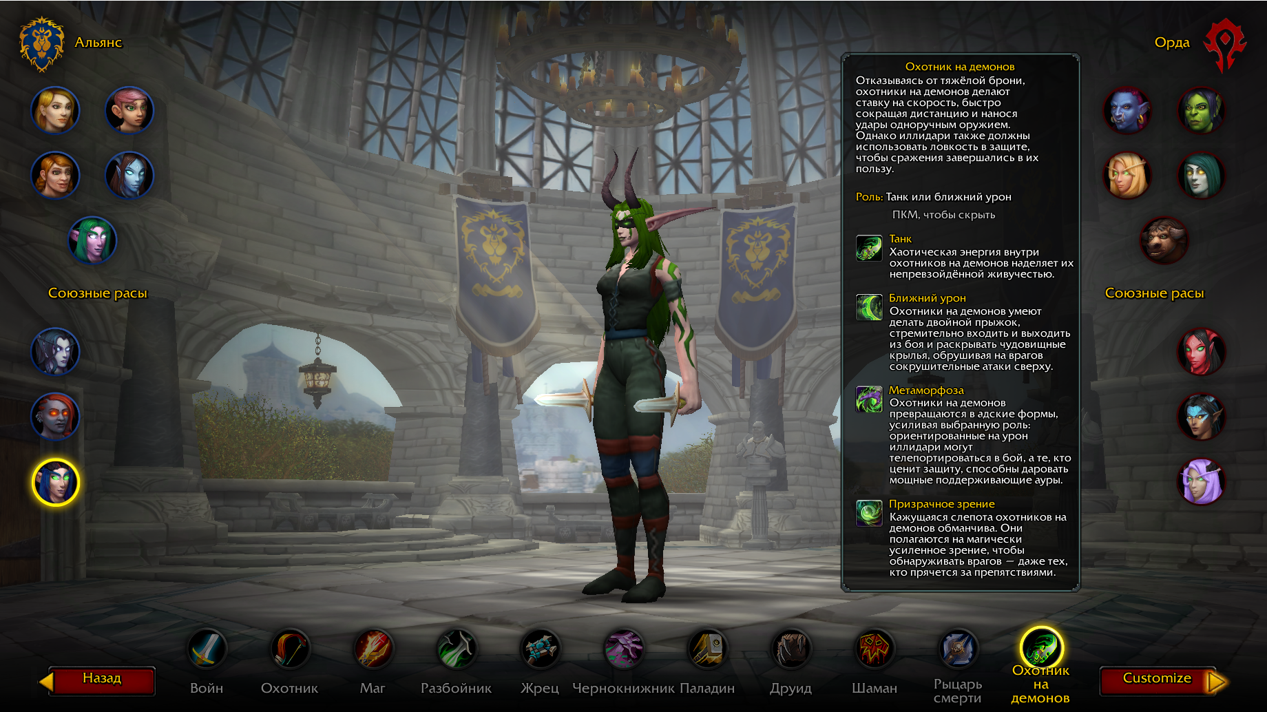 - Для фракции Орды: выбирайте расу Иллидари Син’дорай.